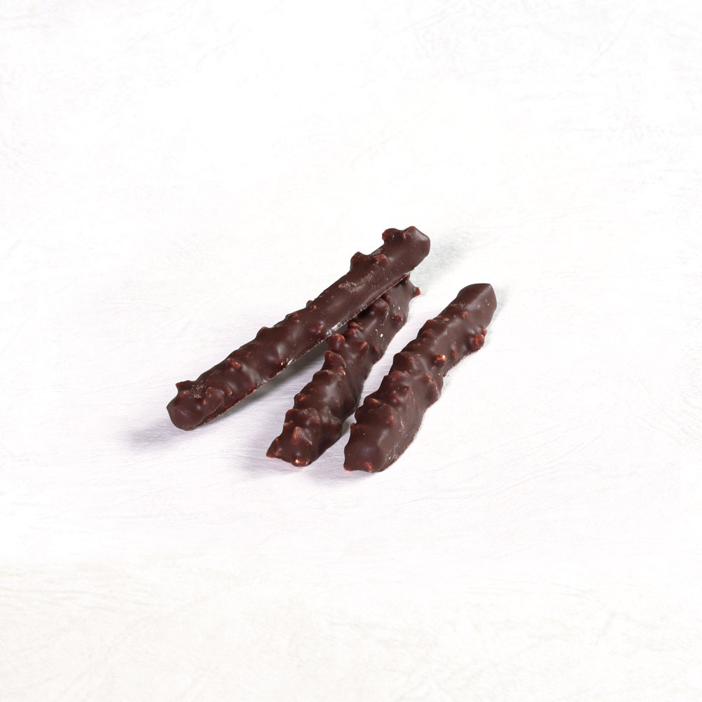 オレンジピールを乾燥させた後、ややビターな味わいのチョコレートでコーティングしました。